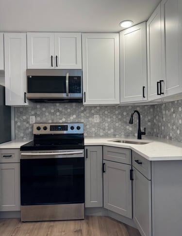 Transformed the kitchen with custom cabinetry, quartz countertops, and modern lighting, enhancing both function and style.