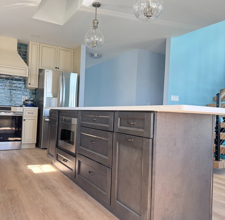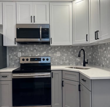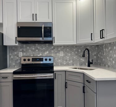 Transformed the kitchen with custom cabinetry, quartz countertops, and modern lighting, enhancing both function and style.