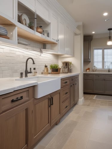 Complete kitchen remodel including plumbing updates, electrical rewiring, and installation of premium finishes.